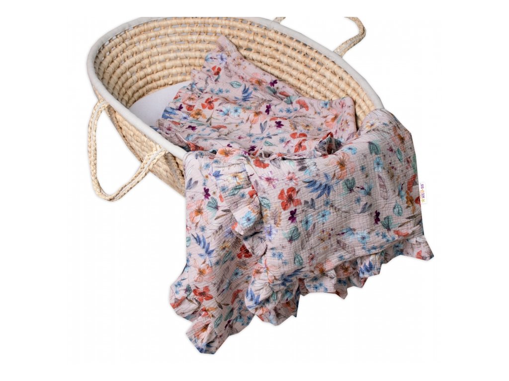 Mušelín se vyznačuje mimořádnou jemností a vzdušností, je lehký, savý a prodyšný materiál, který je šetrný k jemné pokožce miminka. Nemusí se žehlit, což znamená velkou pomoc a ušetření času maminky. Po vyprání je materiál krásně naducaný a strukturovaný.