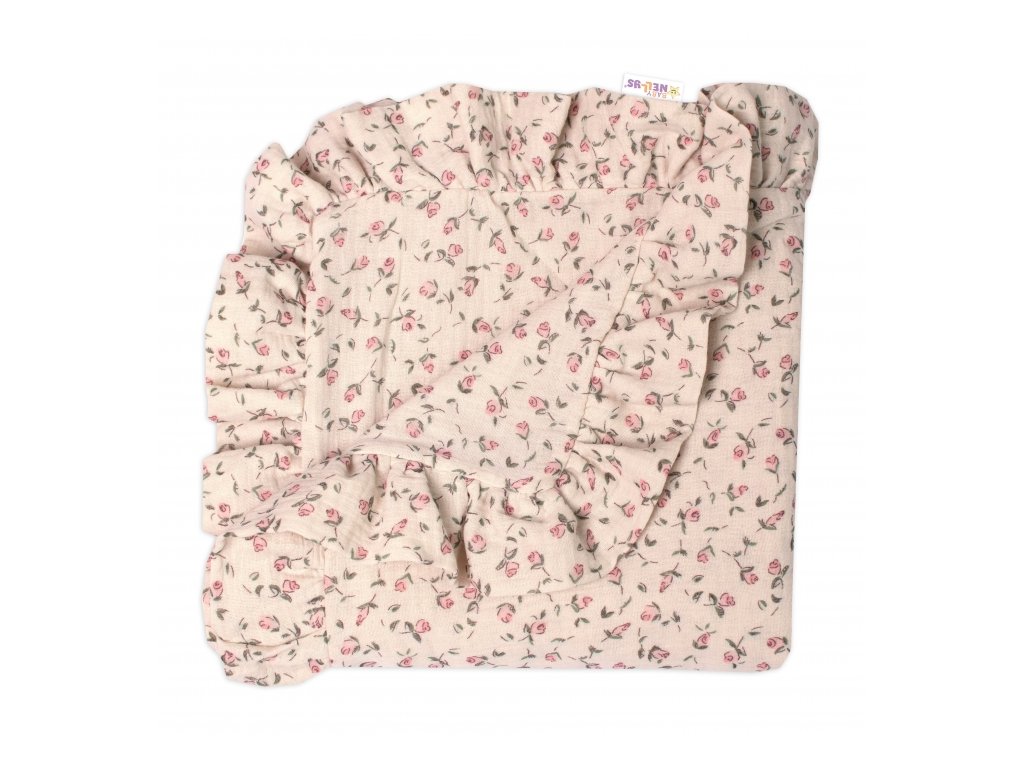 Mušelínová deka s volánkem - Růžička na ecru