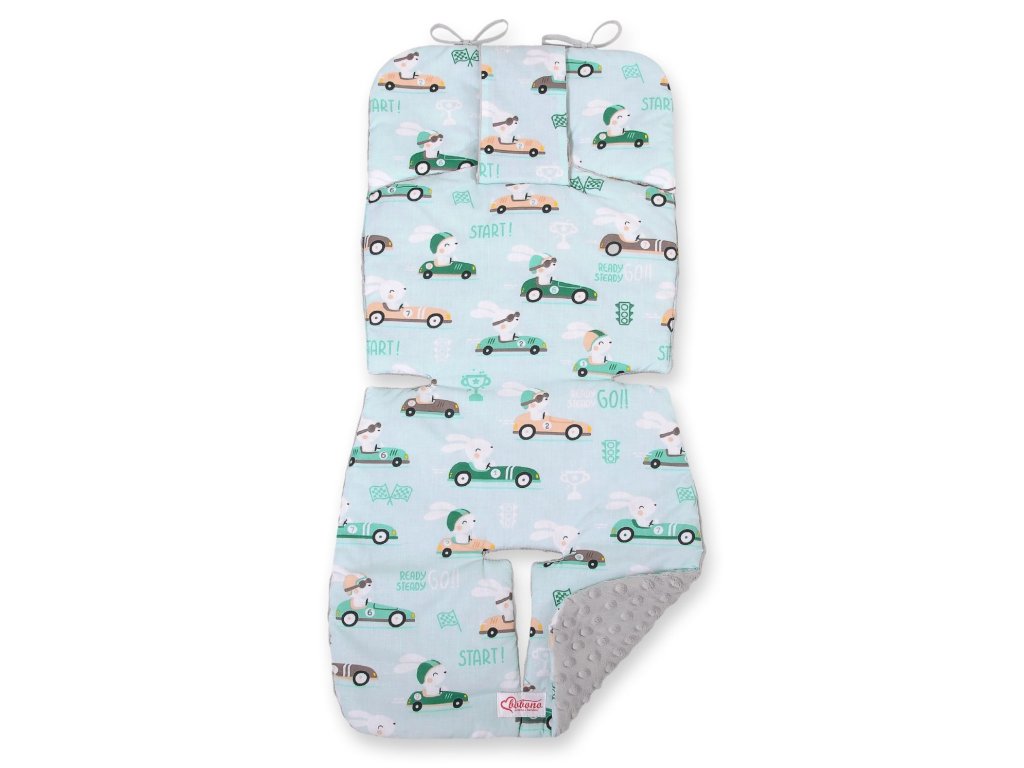 Vložka do kočárku - Závodníci na mátové/šedá