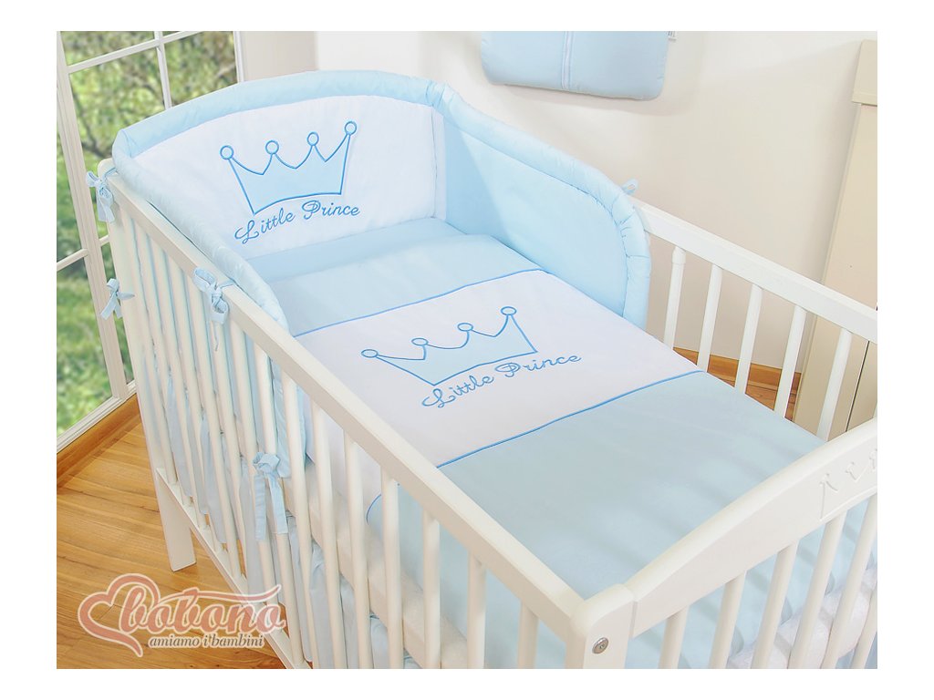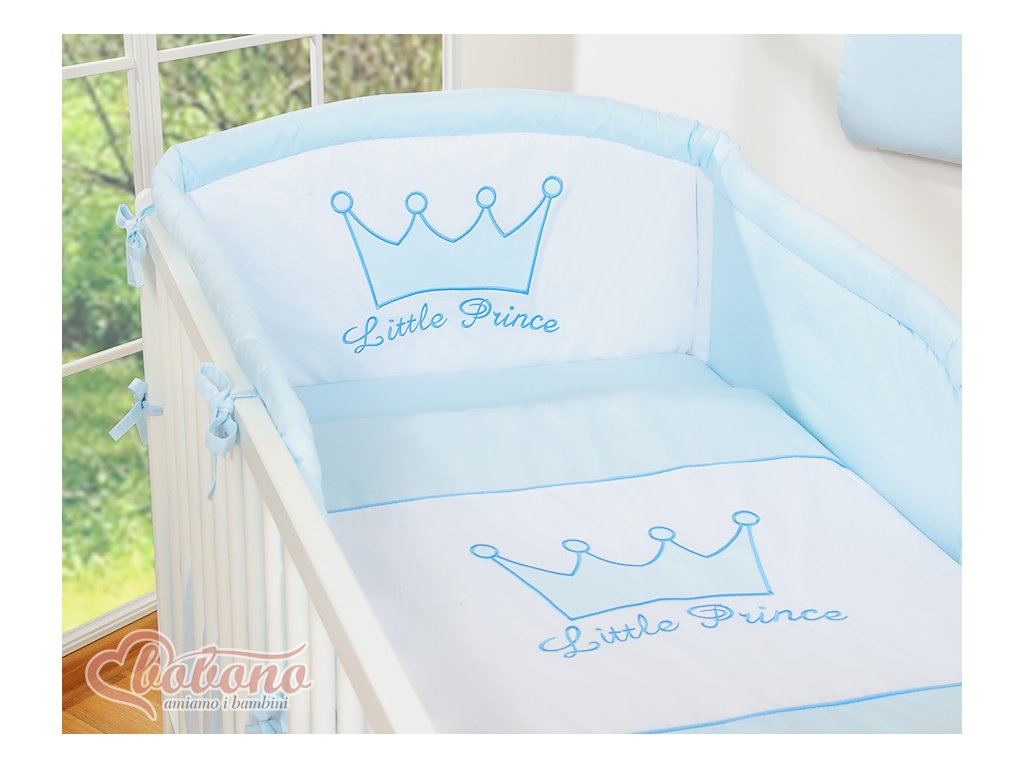 Povlak na peřinku je s výšivkou Koruny a nápisem Little prince. Povlečení se zapíná na zip, který je skrytý