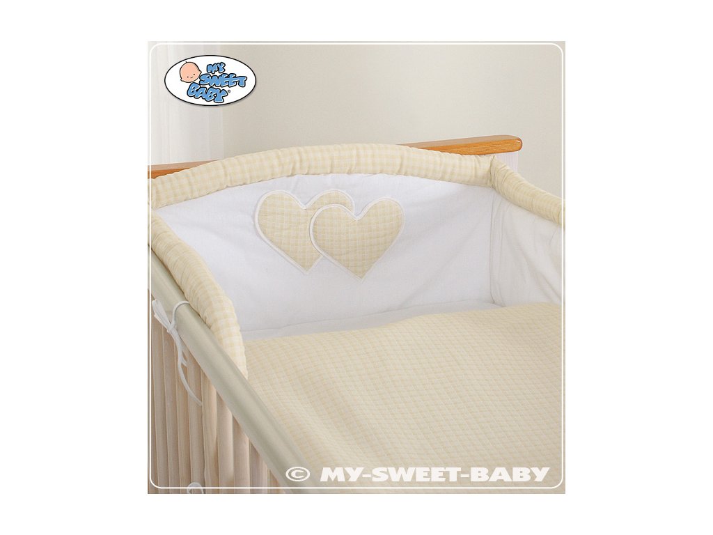 Povlečení s mantinelem - Srdíčka kostička ecru, 135x100 cm