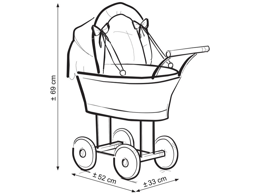 Rozměry kočárku: délka 50-55 cm, šířka 35 cm, výška 65 cm