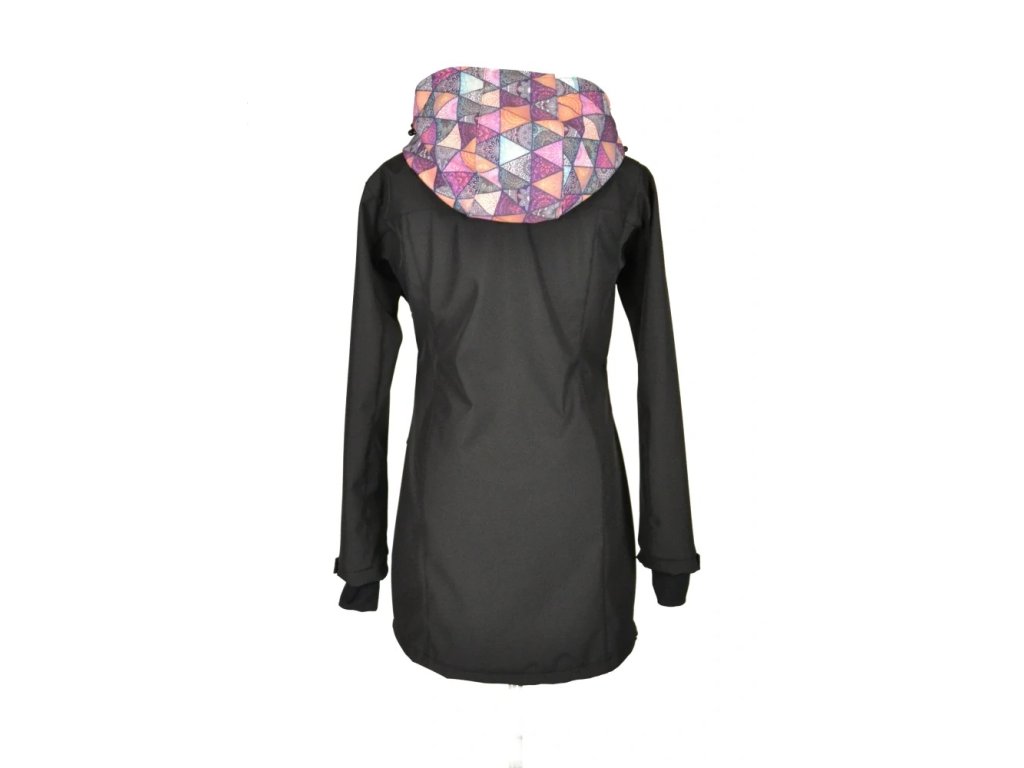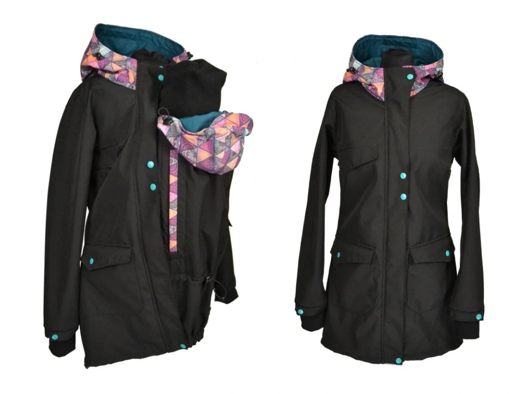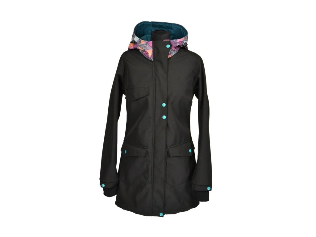 Nosící softshellový kabát s hladícími kapsami - Černá + mandalové trojúhelníky/petrolejová