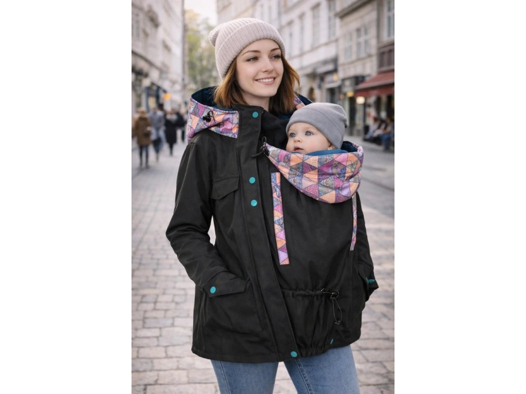 Sama si můžete zvolit, jestli kabát bude pouze pro přední nošení, nebo i pro nošení dítěte na zádech.