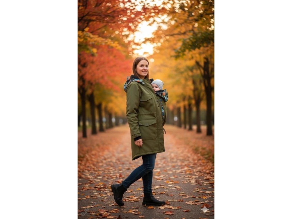 Sama si můžete zvolit, jestli kabát bude pouze pro přední nošení, nebo i pro nošení dítěte na zádech.
