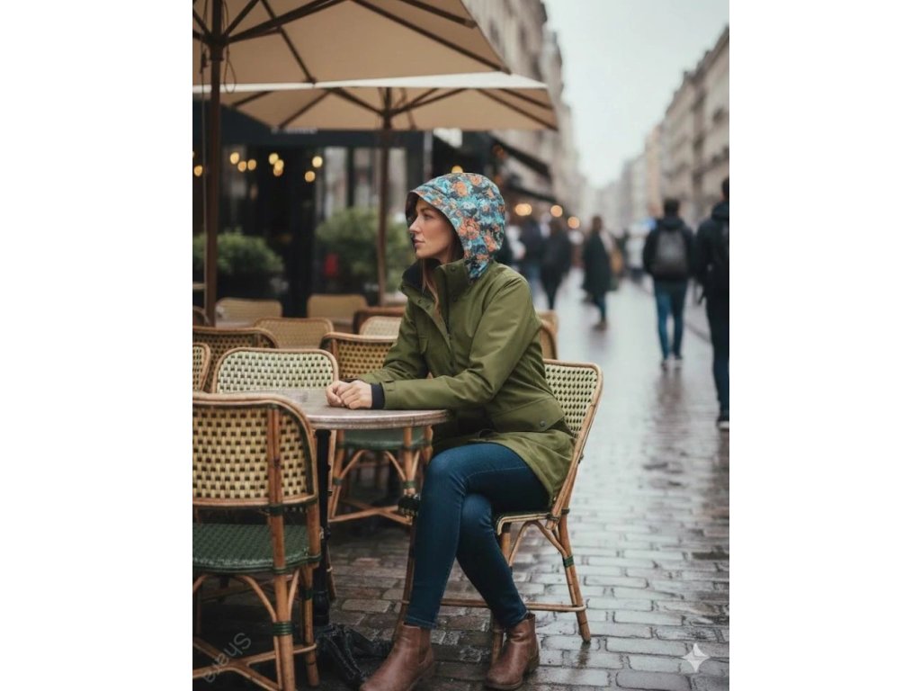 Prostornou kapuci, která se dá stahovat/regulovat brzdičkami a gumičkou