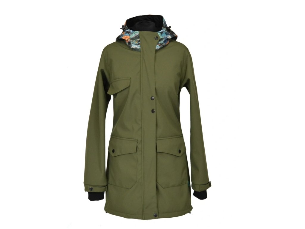 Nosící softshellový kabát s hladícími kapsami - Oliva + národní park