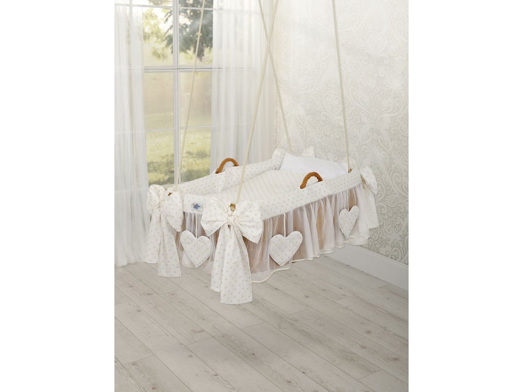 S charakteristickou "holandskou" vazbou. Kolébka zavěšená na dlouhých lanech umožňuje jemné houpání dítěte. Ideální pro uklidnění a zajištění zdravého spánku.