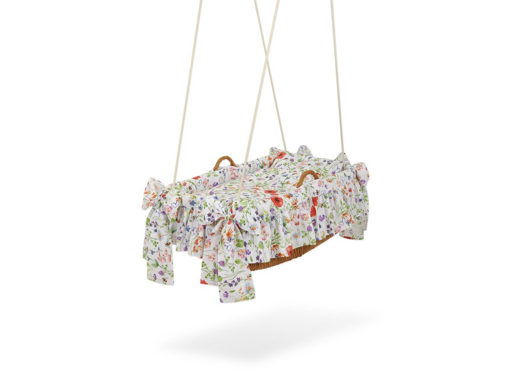 Krásný, ručně pletený proutěný mojžíšův koš/proutěná kolébka k zavěšení