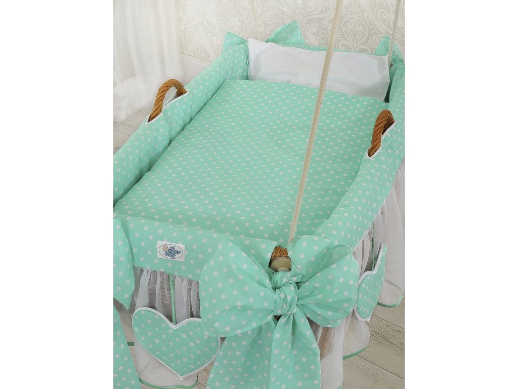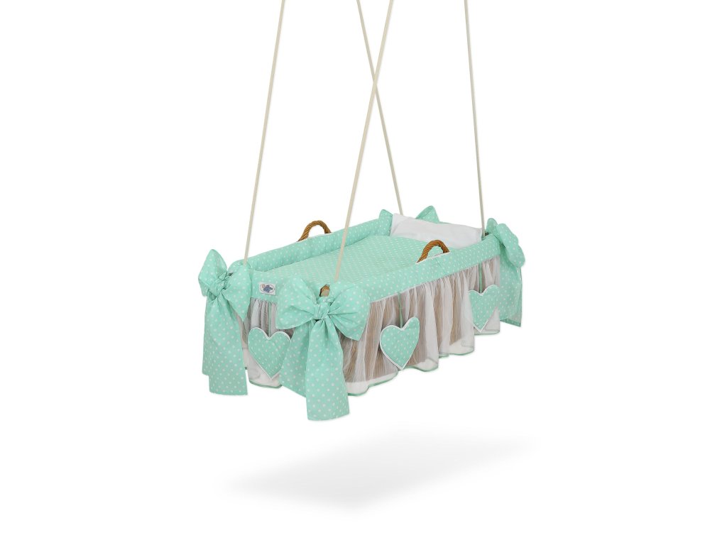 Závěsný mojžíšův koš - Mátová s puntíčky