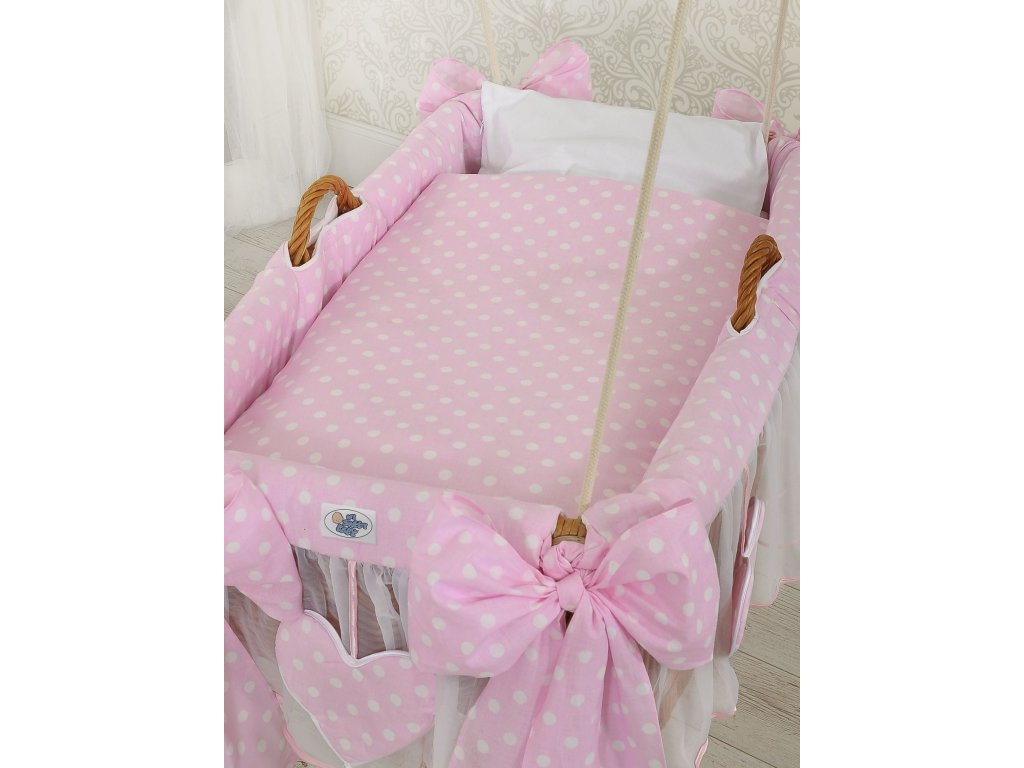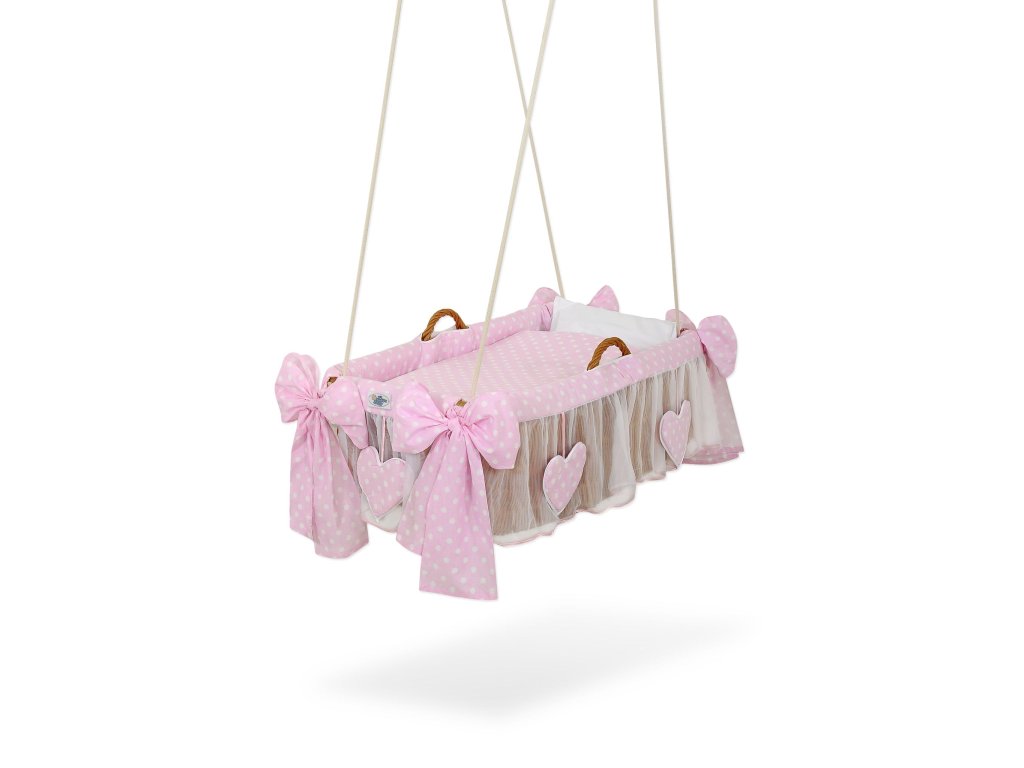 Závěsný mojžíšův koš - Růžová s puntíčky